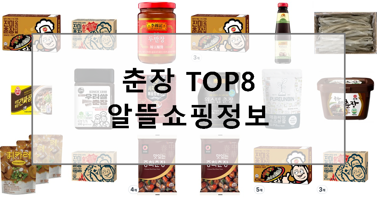 온라인스토어에서 판매하는 춘장 상위 상품들을 선별하고 1위부터 8위까지의 제품을 소개해 드립니다. 1위 상품에 대한 리뷰도 확인해 보세요. 선정 기준은 판매량, 가성비 입니다.